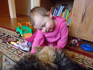 madeline loves our dog otis...she was laughing so hard everytime he kissed her